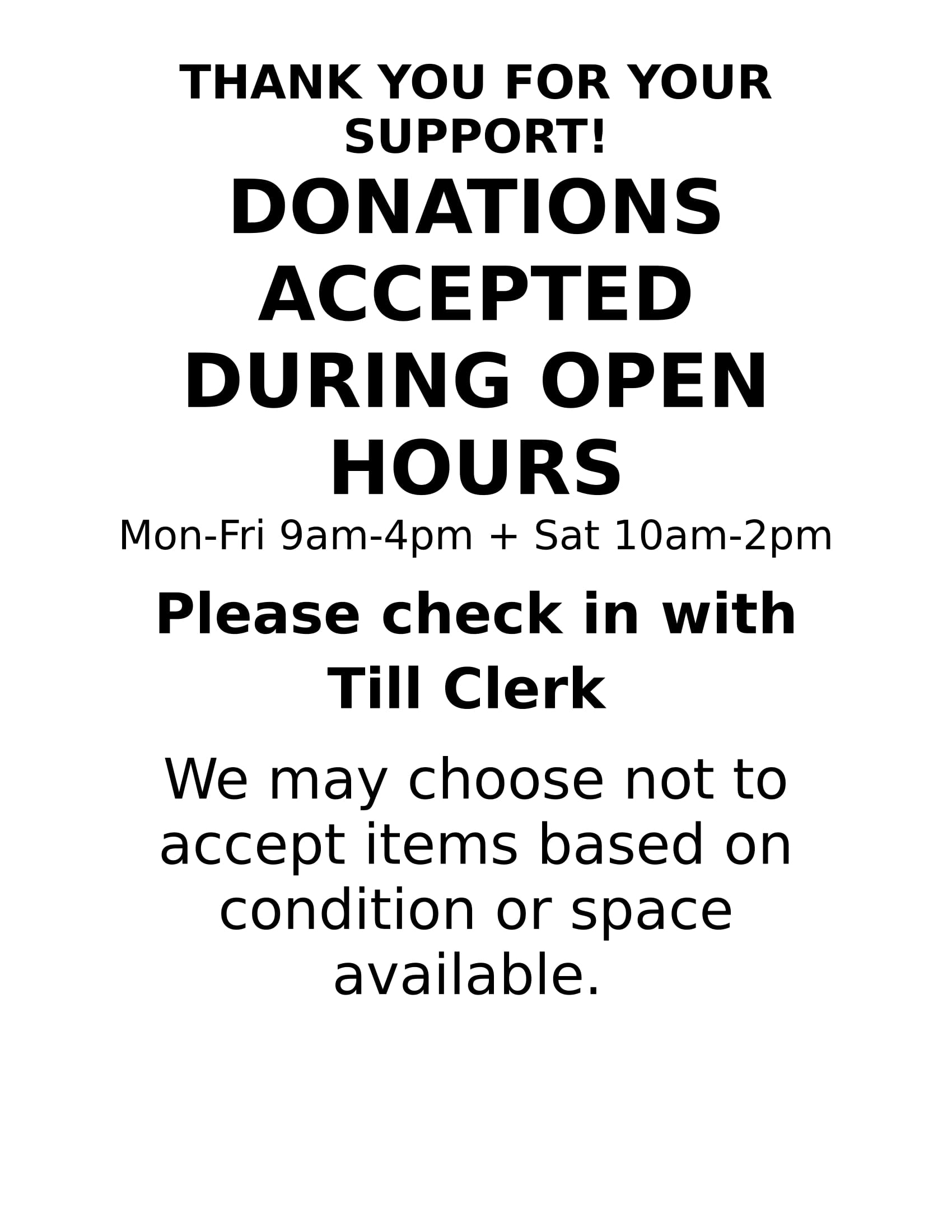 DONATIONS ACCEPTED DURING OPEN HOURS-1